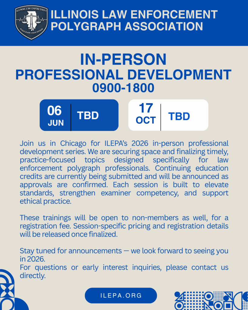 Training aims to strengthen basic skills, maintain consistent methods, and enhance examiner expertise in line with professional standards, including those of the American Polygraph Association (APA).